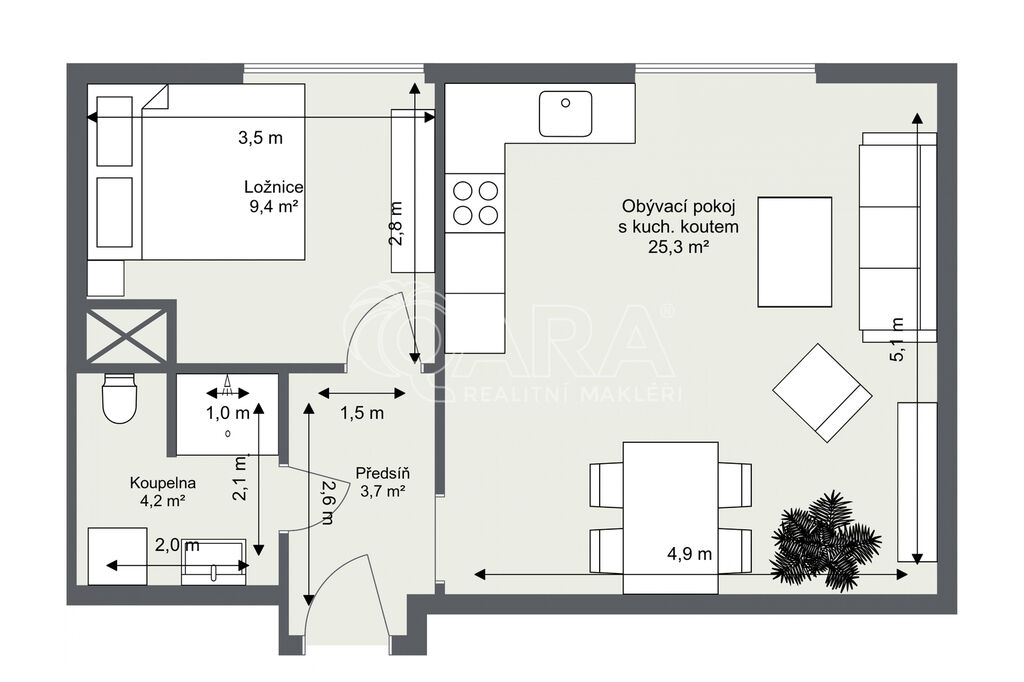 Nabízím k prodeji útulný byt o dispozici 2+kk a velikosti 40,9 m², který prošel rekonstrukcí v září 2025.