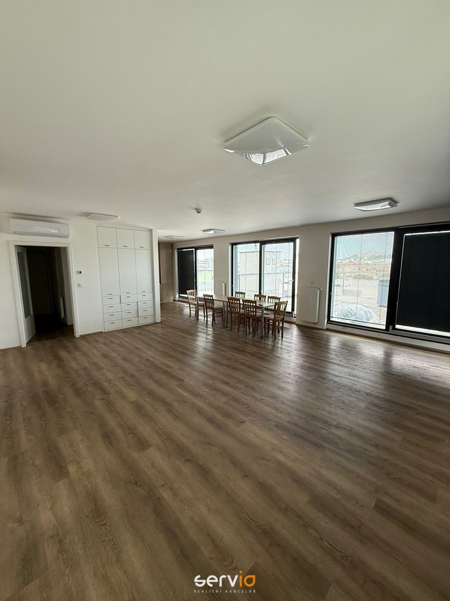 Nabízíme exkluzivně pronájem kancelářske s prostornou terasou, vířivkou (výhled na dominanty Brna – Petrov, Špilberk) v 8.NP s výtahem o velikosti 149 m2 (včetně 39,98 m2 terasy), se sklepem a možností i pronájmu krytého PS v objektu Rezidence Hvězdová, polyfunkční dům obklopený městským parkem, odkud je to na brněnské náměstí Svobody procházkou deset minut.