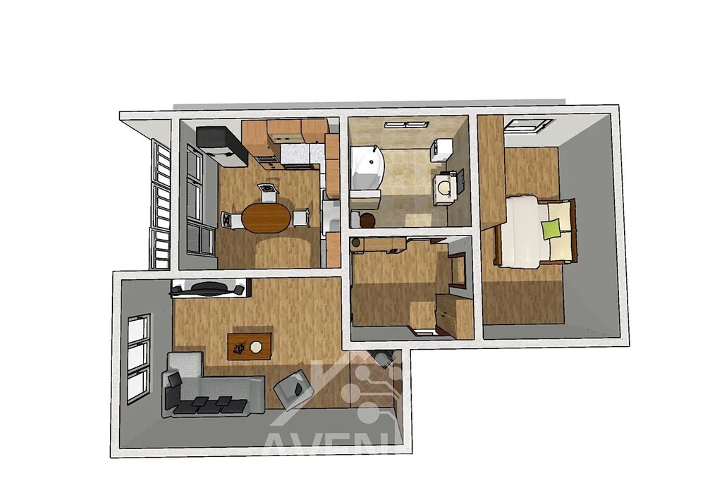 Součástí prodeje je veškerý nábytek a vybavení dle fotografií, což činí byt okamžitě obyvatelným bez nutnosti dalších investic.