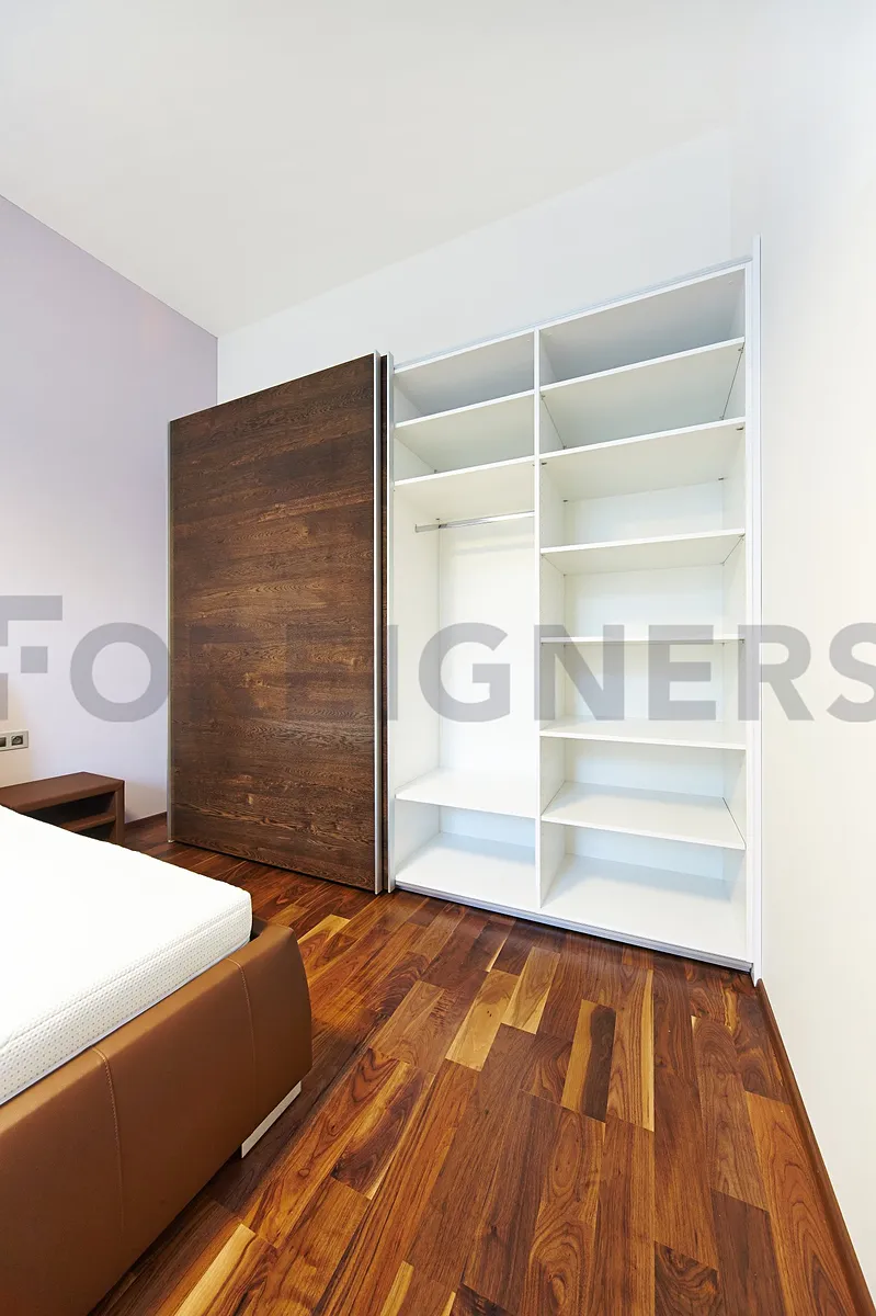 Ložnice je vybavena manželskou postelí a vestavěnou skříní, další skříň se nachází v předsíni.