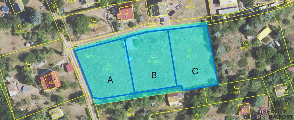A – 839 m2 + podíl 1/3 na příjezdové komunikaci o velikosti 115 m2