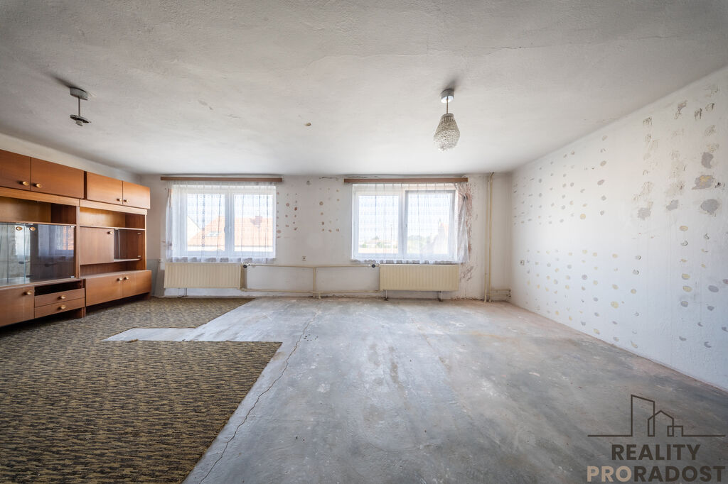 Dům z obou stran přiléhá k sousedním domům, je prostorný, má dvě nadzemní podlaží, je podsklepený, připojený na všechny IS ( elektřina, plyn, kanalizace, obecní vodovod) + studna, celková výměra pozemku je 432 m2, šířka cca 12 m a stáří domu je 60 let.