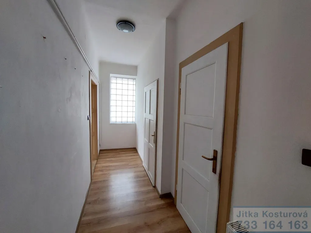 V přízemí se nachází byt o vel. 2+1 s celkovou výměrou cca 66 m2. Vstupní dveře jsou původní dřevěné, se železnými zárubněmi. V bytě se nachází vstupní chodba s korkovou podlahou, po pravé straně se vchází do 2 samostatných pokojů s podlahou z dřevěných parket. Po levé straně se nachází koupelna s umyvadlem, sprchovým koutem, WC a plynovým kotlem zn. Ariston, sloužícím k vytápění pouze tohoto bytu. Koupelna prošla rekonstrukcí cca před 10 lety. Dále je zde kuchyň, vybavená kuchyňskou linkou se spotřebiči - plynová varná deska, elektrická trouba, potravinová skříň.