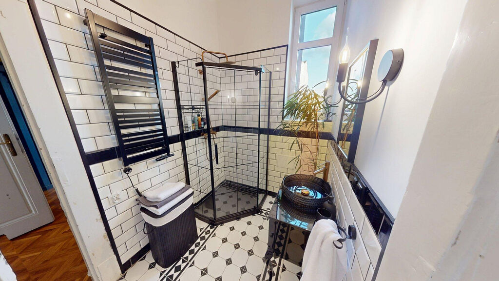 Tento byt Vás okamžitě okouzlí svou jedinečnou atmosférou noblesní dispozice navozující pocit bydlení na zámku. Majitelka při rekonstrukci kladla velký důraz na zachování historického rázu interiéru a genia loci cihlového domu. Každý detail byl promyšlen - od renovovaných dřevěných podlah a parket, přes výběr nábytku až po doplňky. Vše bylo citlivě sladěno tak, aby byt působil harmonicky a zůstal věrný duchu starého měšťanského domu v centru Ostravy.