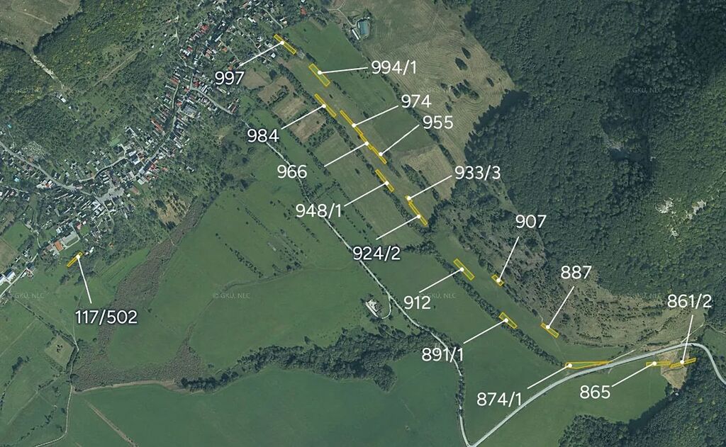 Pozemky jsou zapsané na LV 1701 pod parc. č. 117/502, 861/2, 865, 874/1, 887, 891/1, 907, 912, 924/2, 933/3, 948/1, 955, 966, 974, 984, 994/1, 997, 2653, 2661, 2671, 2691, 2699, 2714, 2721, 2734, 2755, 2758, 3888, 3902, 3905, 3916, 3922, 4674 a 4741.