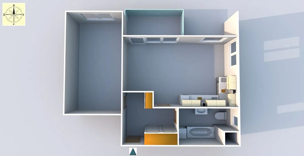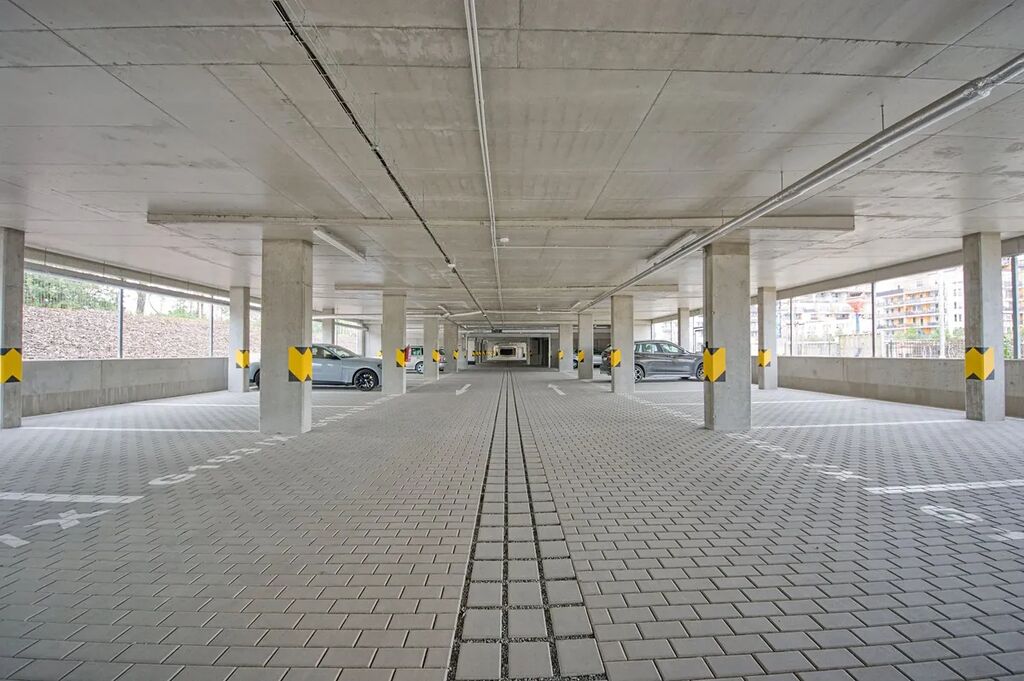Byt 2+kk (57,5 m2) se zastřešenou terasou (6,8 m2) a garážovým stáním. 7. patro z 8 se dvěma výtahy.