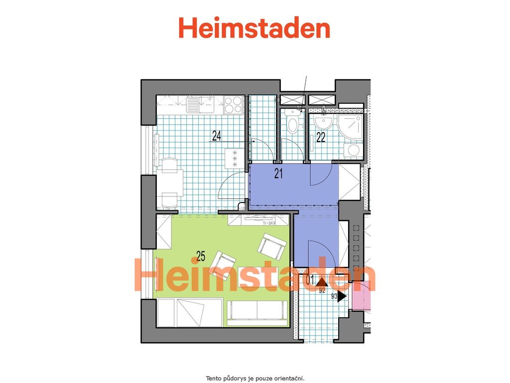 Kuchyňský kout je vybaven moderní kuchyňskou linkou, připravenou na vaše kulinářské nápady.