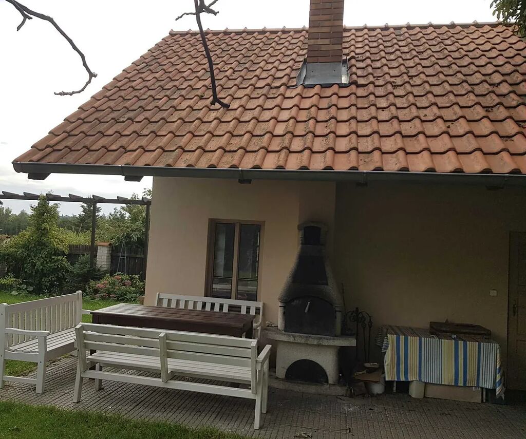štukové omítky s malbami. U domku je venkovní posezení kryté přesahem střechy. Domek vybaven elektrorozvody.