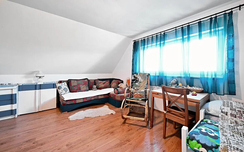 Dispozice zahrnuje čtyři pokoje, kuchyňský kout, koupelnu s prostorným sprchovým koutem a WC. Samozřejmostí je také sklep o velikosti 9 m², který je využíván jako dílna a také malý sklípek pod chodbou v přízemí. Další úložný prostor se nachází pod vstupní terasou a úložné možnosti nabízí také pochozí půda, která je nad celým druhým nadzemním podlažím. Dům je plně vybavený.