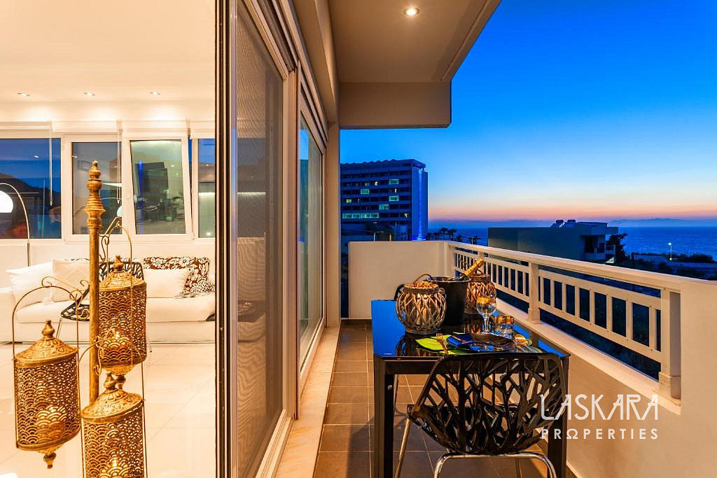 Apartmán nabízí podlahové vytápění, klimatizaci, hliníková okna s dvojitým zasklením a bezpečnostní dveře. Jeho stav je výborný, připravený k okamžitému užívání, a díky poloze v blízkosti pláže, obchodů, kaváren, hotelů i historického centra Rhodosu je vhodný jak pro osobní bydlení, tak jako luxusní investice s vysokým výnosem.