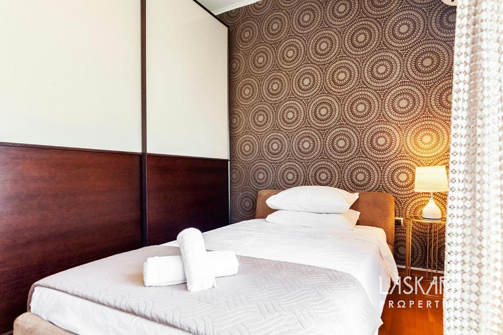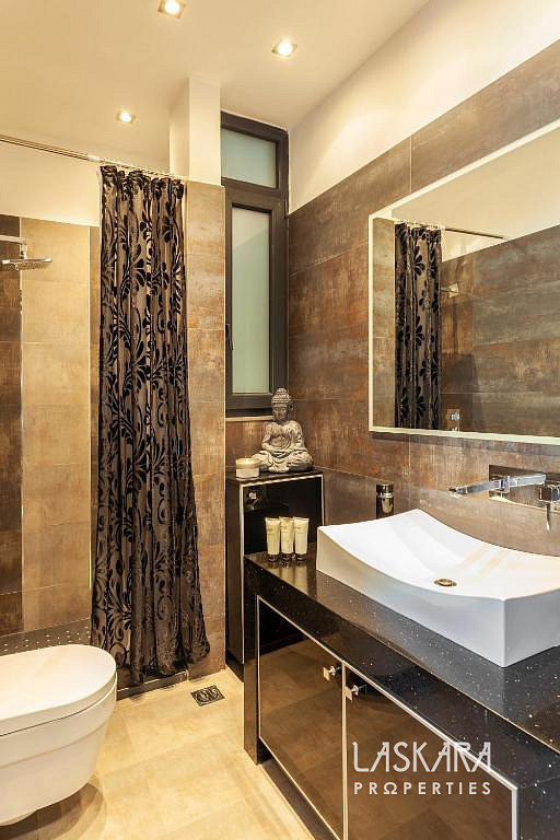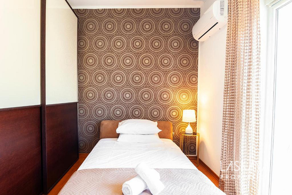 Tři samostatné ložnice, z nichž dvě disponují manželskými postelemi a třetí pohodlným jednolůžkem, byly navrženy s důrazem na soukromí, styl a kvalitu spánku. Každá má vlastní TV, prostorné úložné prostory a elegantní textilie. Dvě koupelny, laděné do teplých tónů přírodních materiálů, kombinují moderní design a prvky zen estetiky, které vytvářejí atmosféru klidu a relaxace.