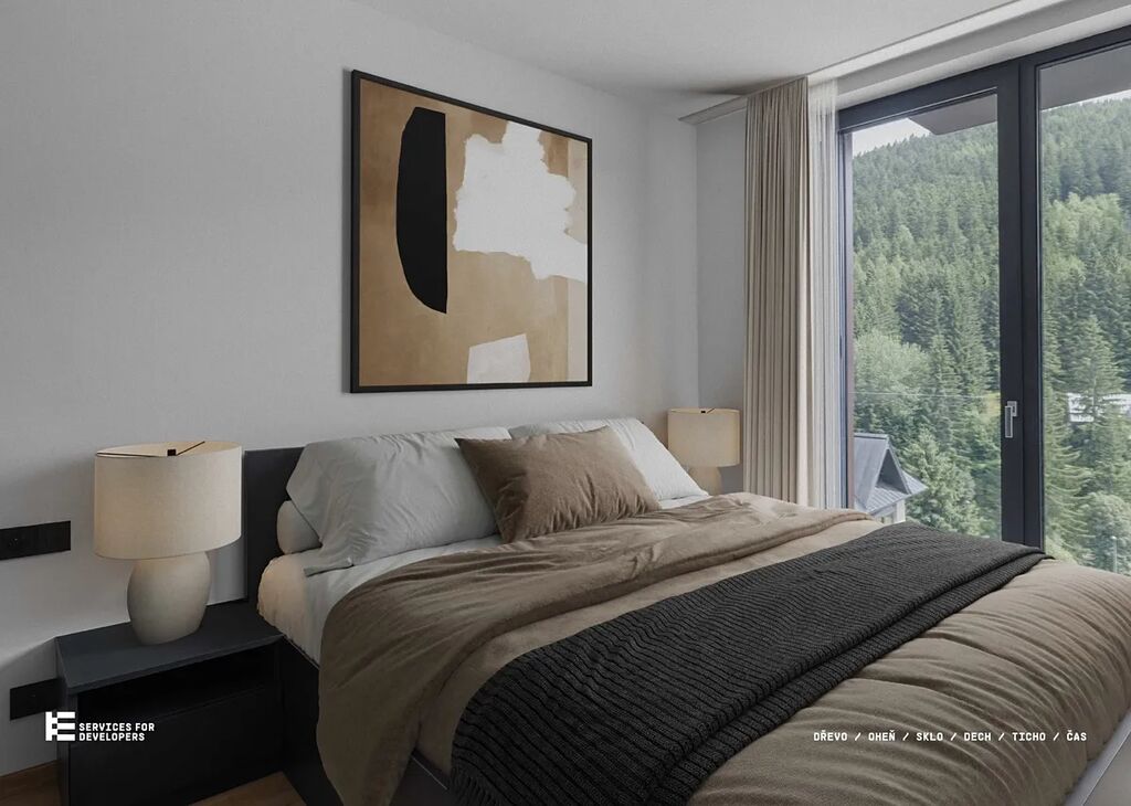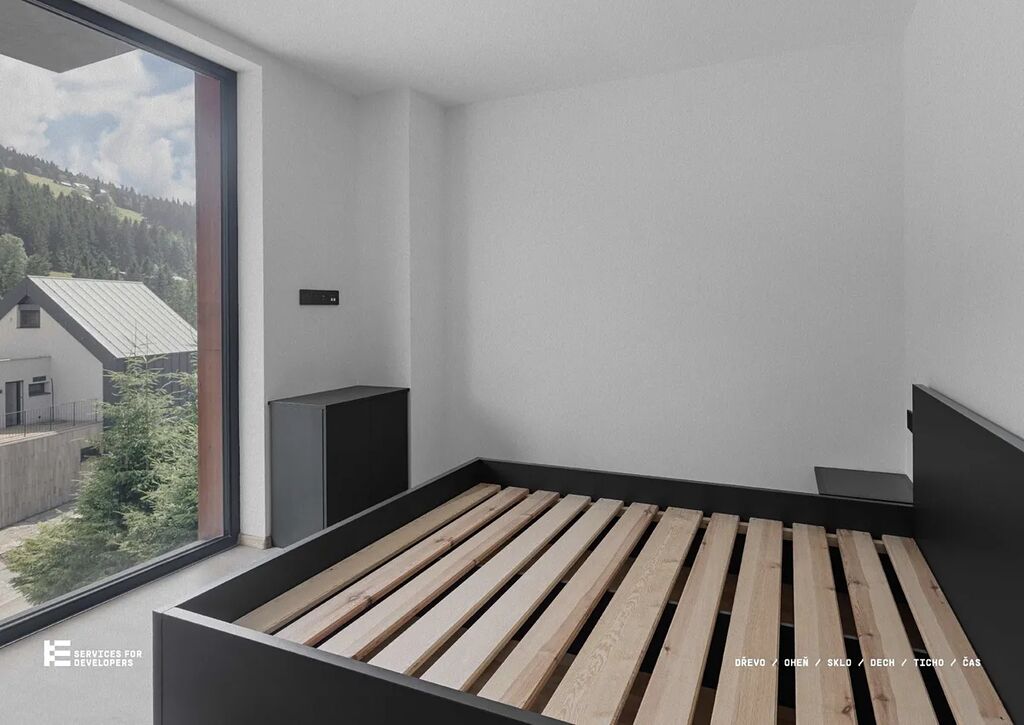 Každý detail tu má své místo – od minimalistických linií po útulné dřevěné stropy, které dýchají klidem a teplem.