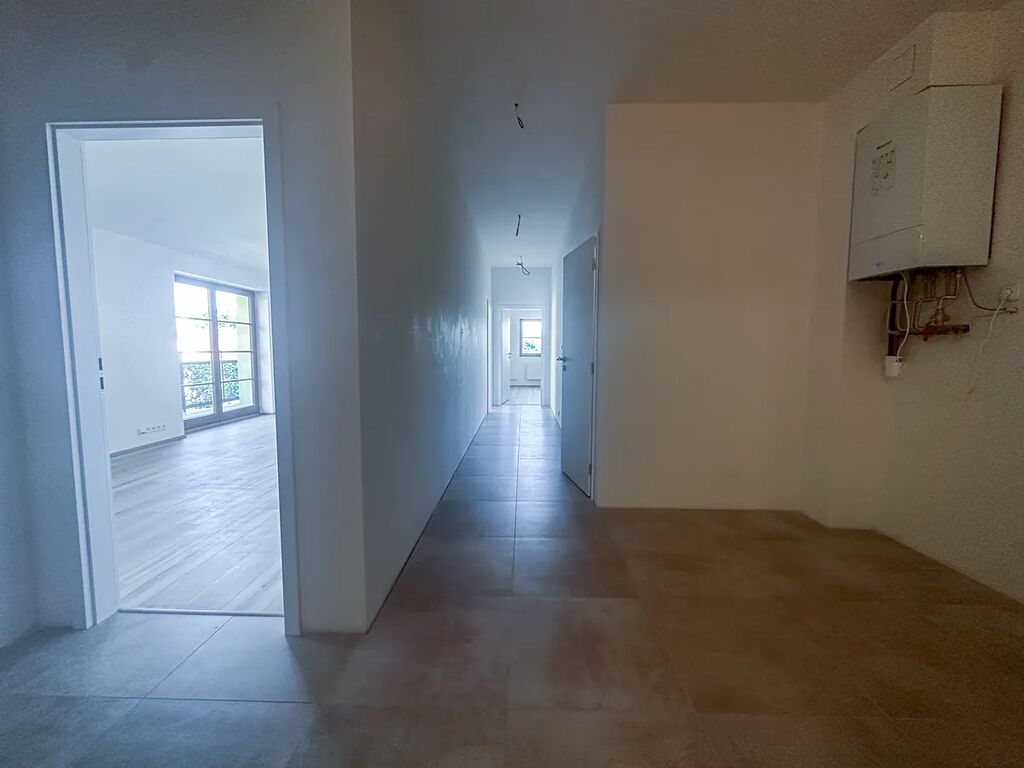 Nový byt se nachází v druhem patře cihlového domu, má dispozici 3+kk + velkou terasou, sestává se z : vstupní prostorné chodby vedoucí do obývacího pokoje s přípojkou na kuchyň, kuchyň se musi pořídit nájemce, dvou samostatných ložnic, koupelna je vybavena toaletou, vanou, umyvadlem s přípojkou na pračku, druhý samostatným WC.