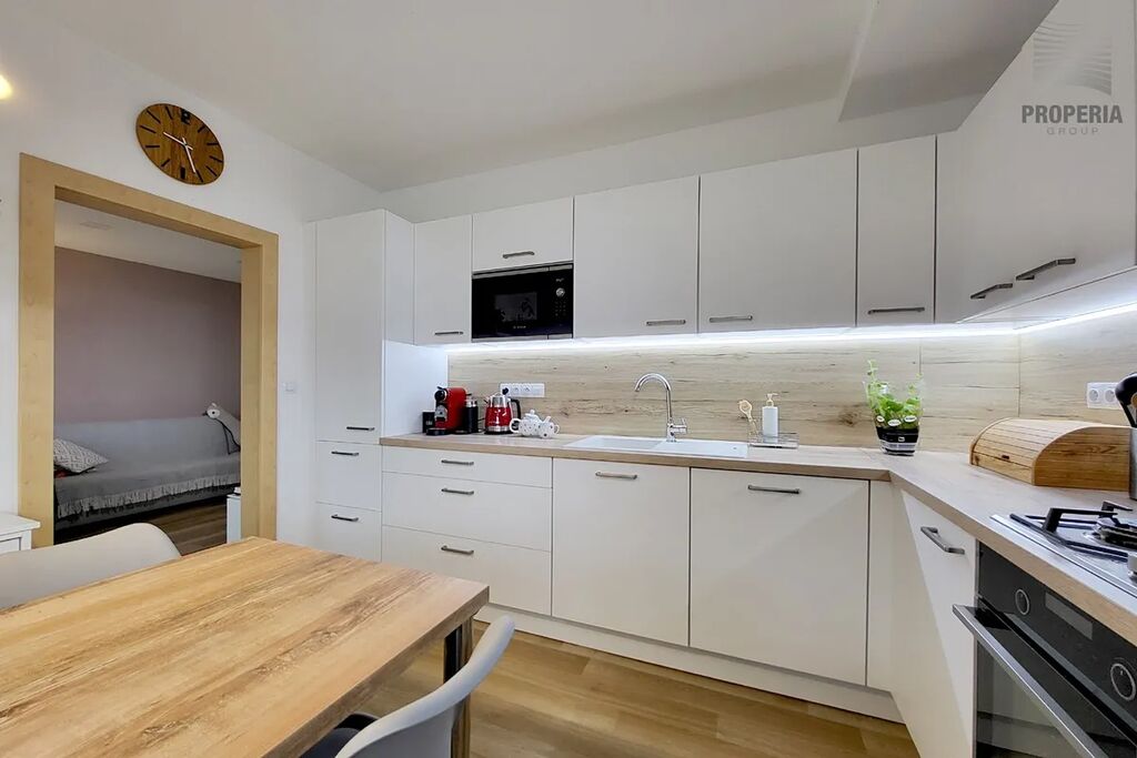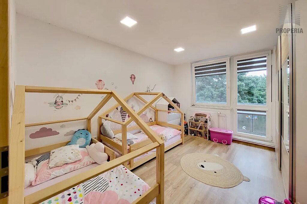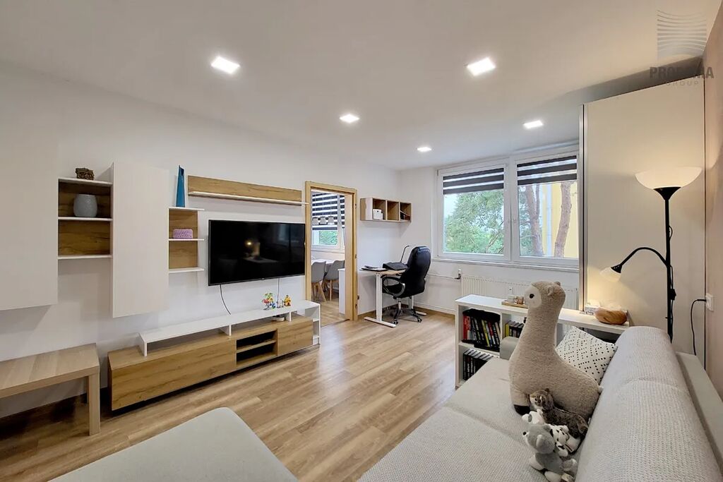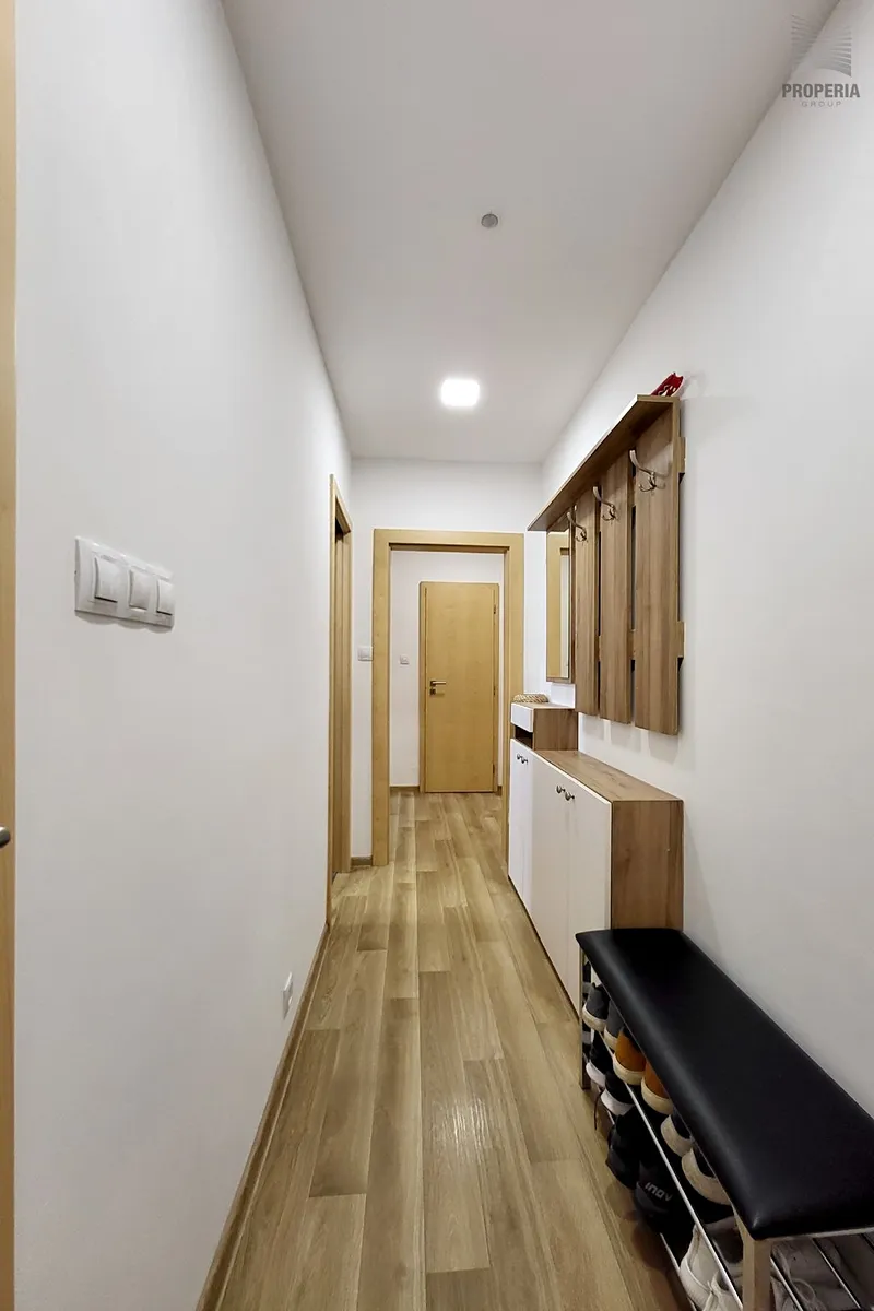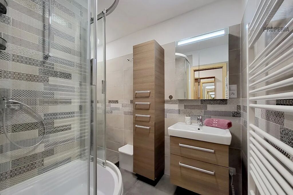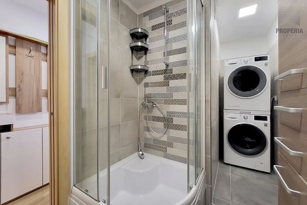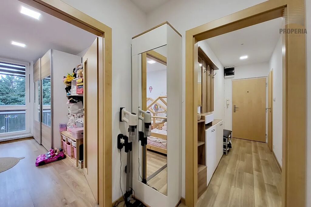 Koupelna nabízí komfortní sprchový kout a dostatek prostoru, kam se pohodlně vejde pračka i sušička, zatímco toaleta je řešena samostatně. Dispozice je promyšlená pro rodinný život a jako nadstandard zde najdete prostornou, praktickou šatnu, která efektivně řeší veškeré úložné potřeby. Samotný bytový dům je po kompletní revitalizaci (zateplení, fasáda, plastová okna, stoupačky), což garantuje nízké provozní náklady i estetickou hodnotu.