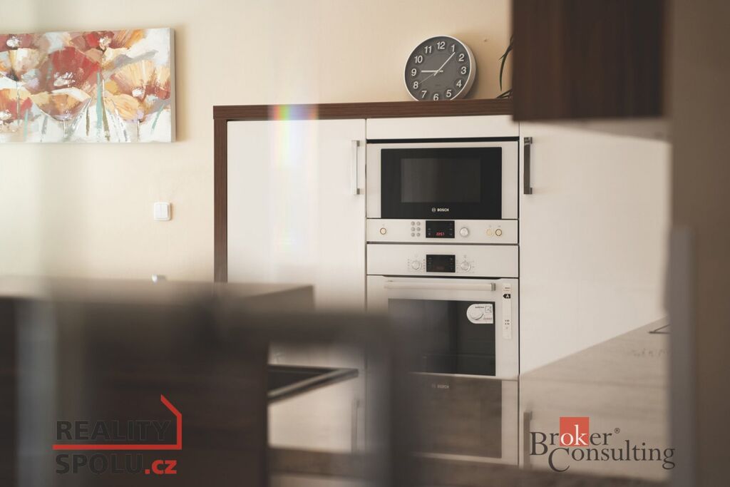 V horním patře se nachází ložnice, dětské pokoje a koupelny. Parkování je jedno v kryté zamykací garáži, druhé je před garáží venku na vlastním pozemku. Dům je vybaven EZS a kamerovým systémem. Půda nad domem je zateplená, obložená sádrokartónem, možno využít jako sklad nebo další šatnu.