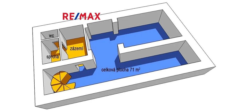 Prostor je rozdělen do dvou úrovní – přízemí o velikosti 50 m² slouží jako hlavní obchodní plocha s přímým vstupem z ulice Novobranská, zatímco spodní část ve sklepení (71 m²) nabízí zázemí, sklad nebo doplňkový prostor pro provoz. Díky tomuto členění je prostor vhodný pro širokou škálu využití – butik, kavárnu, kosmetické studio, showroom nebo kancelář s prezentačním prostorem.