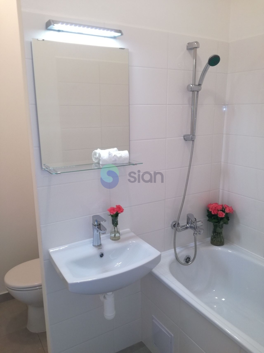 Koupelna je vybavena vanou a umyvadlem, toaleta je součástí koupelny.