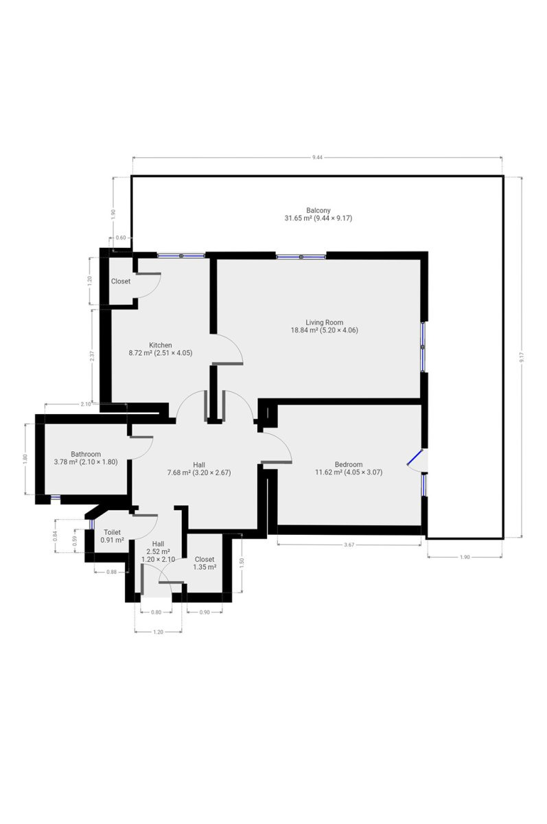 Byt se nabízí částečně vybavený. Součástí kuchyňské linky je elektrická trouba, sklokeramická deska a lednice. Přímo z kuchyně je dostupná praktická spíž. V pokojích vás zaujmou udržované parkety. Obytné prostory jsou nevybaveny, můžete si tak byt zařídit podle svých představ . Koupelna disponuje vanou, umyvadlem a pračkou. Toaleta je umístěna samostatně. Ze zádveří je přístup také k šatně. K bytu patří skutečně velká terasa, situovaná do L, která poskytuje skvělý výhled.
