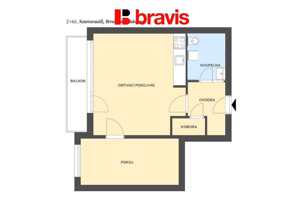 Ve výhradním zastoupení nabízíme k pronájmu byt 2+kk, situovaný v oblíbené lokalitě Brna - Starý Lískovec, na ulici Kosmonautů. Byt se nachází v 3. patře bytového domu s výtahem. Celková plocha bytu je 39 m2, doplněný o plochu lodžie 4 m2 a sklepní kóji 2 m2.