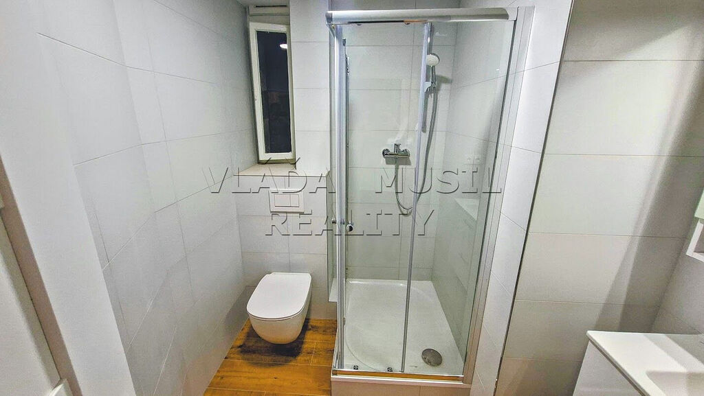Nabízíme k pronájmu velmi pěkný nově kompletně zrekonstruovaný byt 1+1 v Praze 8 (Libeň), ulice Novákových - kousek od stanice metra "Palmovka". Byt o celkové rozloze 41 m² se nachází ve druhém patře cihlového domu. Tvoří ho vstupní předsíň, pokoj, kuchyň a koupelna s toaletou. V bytě byla právě dokončena nákladná kompletní rekonstrukce = vše je nové – rozvody, okna, plovoucí podlahy a dlažba, omítky, interiérové i vstupní dveře, koupelna se sprchovým koutem a toaletou a další. Nad koupelnou je velký úložný prostor. Teplou vodu zajišťuje bojler, vytápění přímotopy. Nové je také veškeré vybavení bytu. Nová kuchyňská linka je vybavena varnou deskou, el. multifunkční troubou, digestoří, vestavnou myčkou nádobí, velkou lednicí s mrazákem a pračkou. V koupelně je velké umyvadlo se skříňkou, zrcadlo s osvětlením, sprchový kout s posuvnými dveřmi a toaleta. V celém bytě je osvětlení.