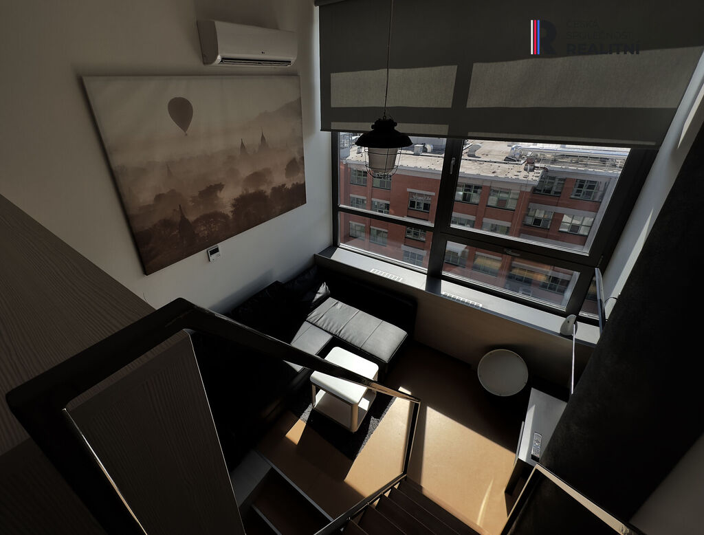 Loftové bydlení nabízí atraktivní otevřený prostor s výškou stropu 4,2 metru. Byt je orientovaný na jihozápadní stranu, okna je možno zastínit pomocí elektricky ovládaných rolet a byt je klimatizovaný. Byt se nachází v 7.NP, otvírá se Vám tak výhled do okolních lesů.