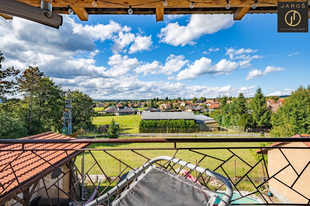 Nemovitost má tři nadzemní podlaží a je celkově podsklepena. V suterénu se nachází garáž, kotelna, dva sklepy a prádelna. V přízemí je samostatný byt se vstupem na balkon, v prvním patře najdete další byt s prostornou terasou, odkud se otevírá krásný výhled na zahradu i okolní krajinu. Podkroví pak nabízí další možnosti využití a úložného prostoru.