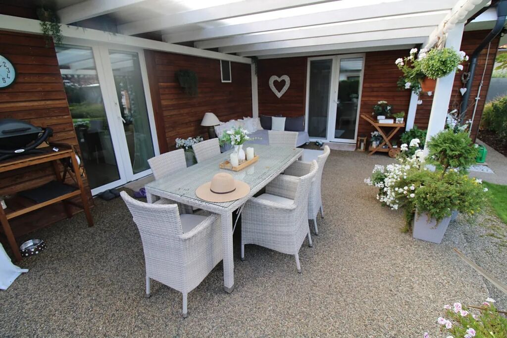 Z obývacího pokoje i z ložnic je přímý vstup na zastřešenou terasu, která nabízí ideální místo pro odpočinek i posezení s rodinou a přáteli. Na terasu navazuje pečlivě udržovaná zahrada s bazénem, poskytující naprosté soukromí.