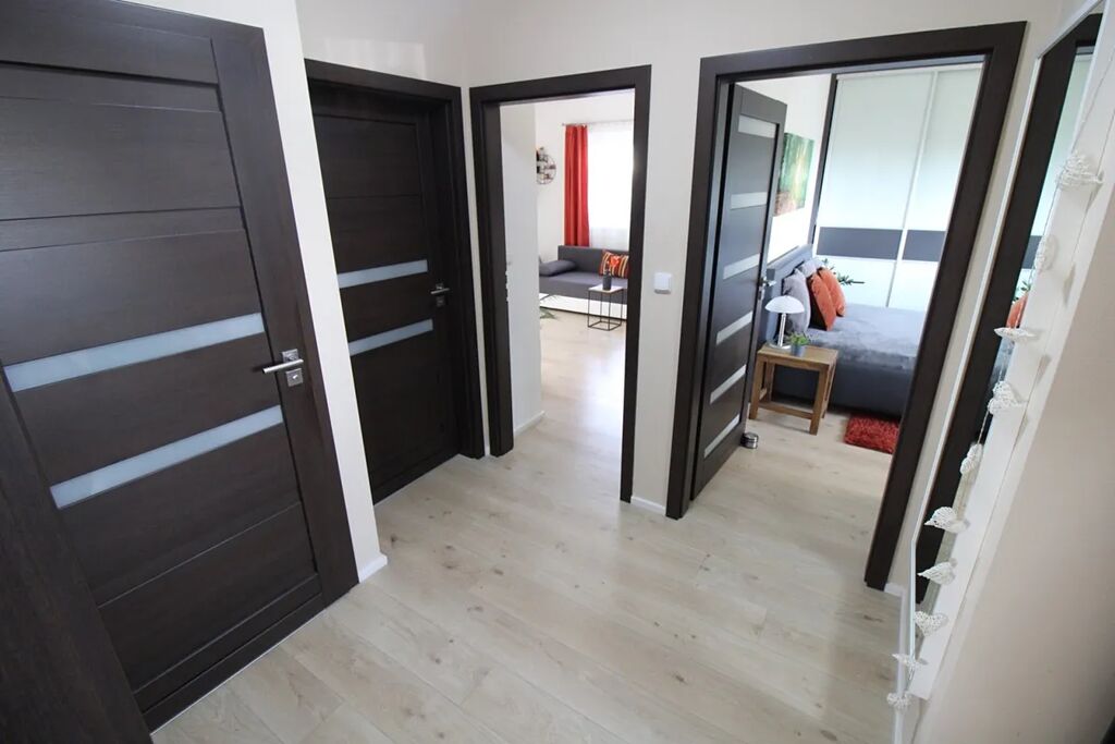Dále jsou zde tři samostatné ložnice, dvě koupelny (jedna s WC, druhé WC samostatné) a praktická technická místnost.