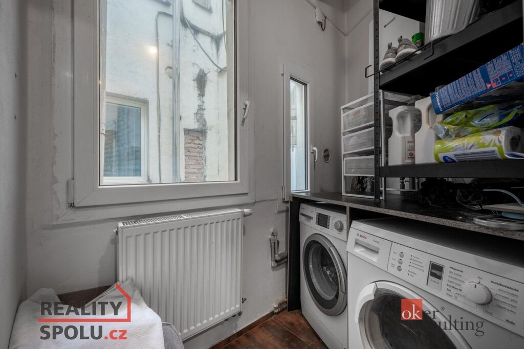 Výhodou bytu je komora, sloužící jako technická místnost. Vejde se tam pračka i sušička. Kromě kotle na vytápění a ohřev vody je zde dostatek prostoru na úložné systémy.