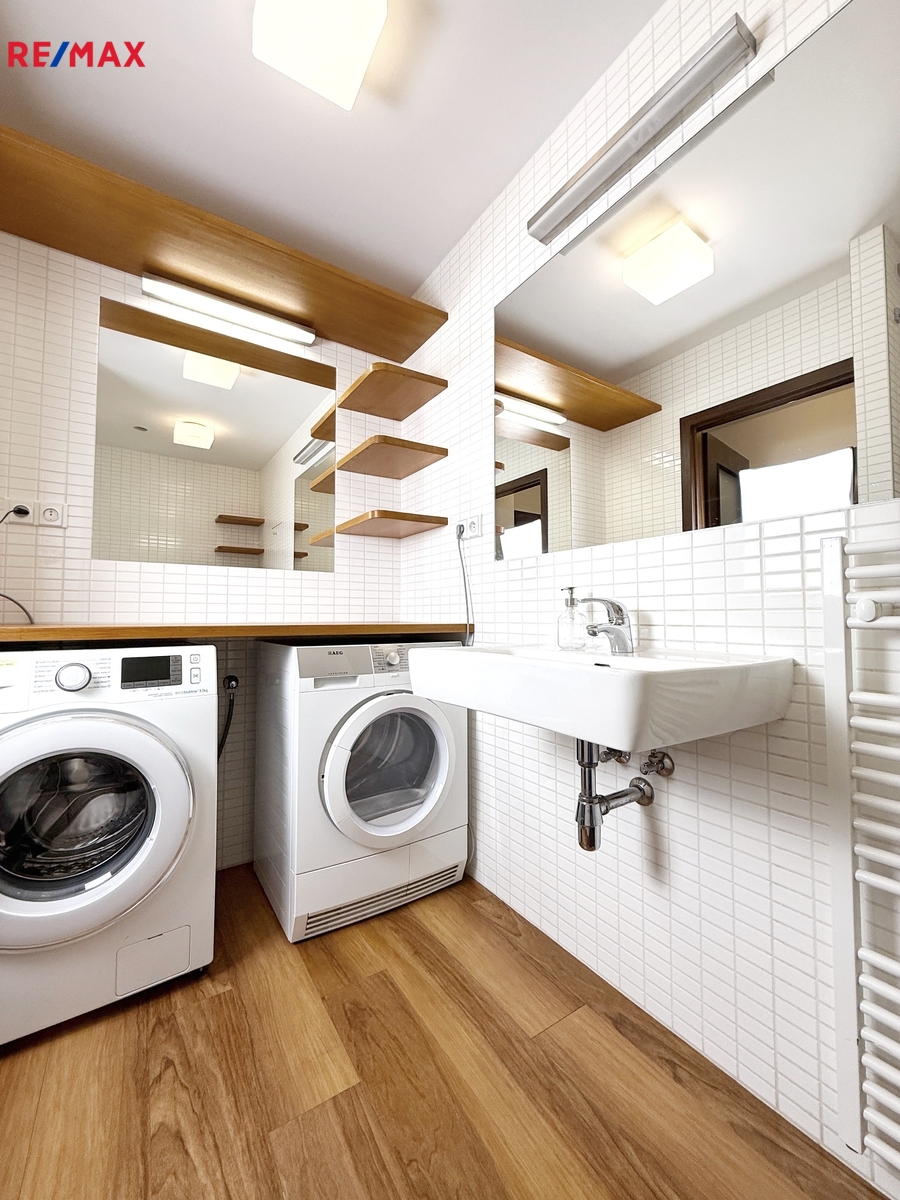 Byt disponuje prostornou šatnou a vestavěnými skříněmi, které nabídnou dostatek úložného prostoru.
