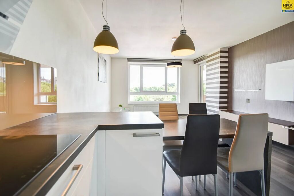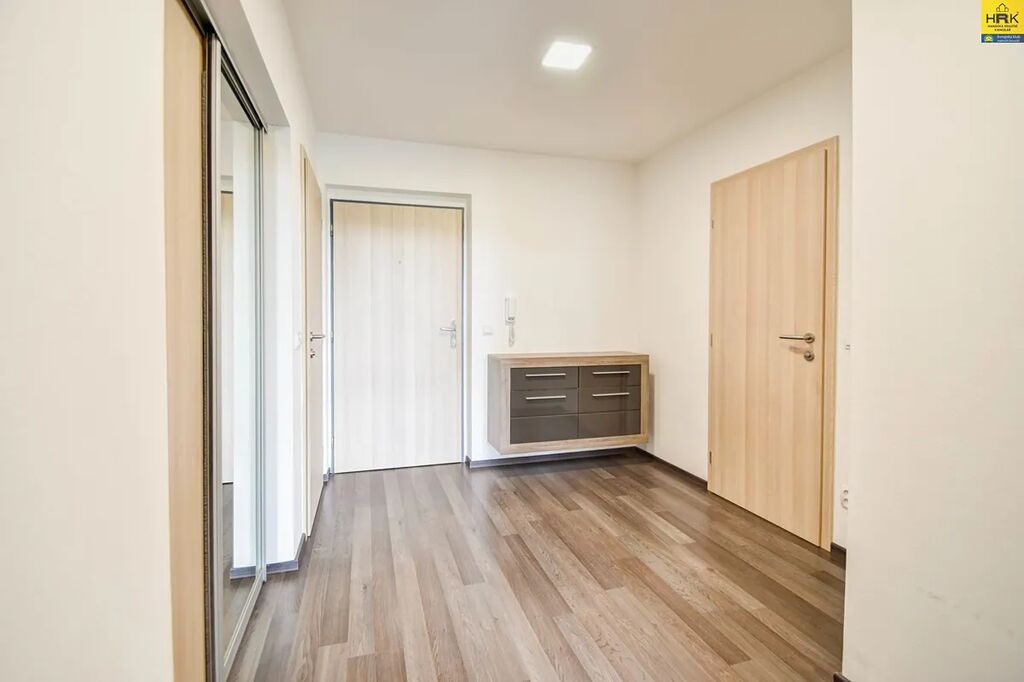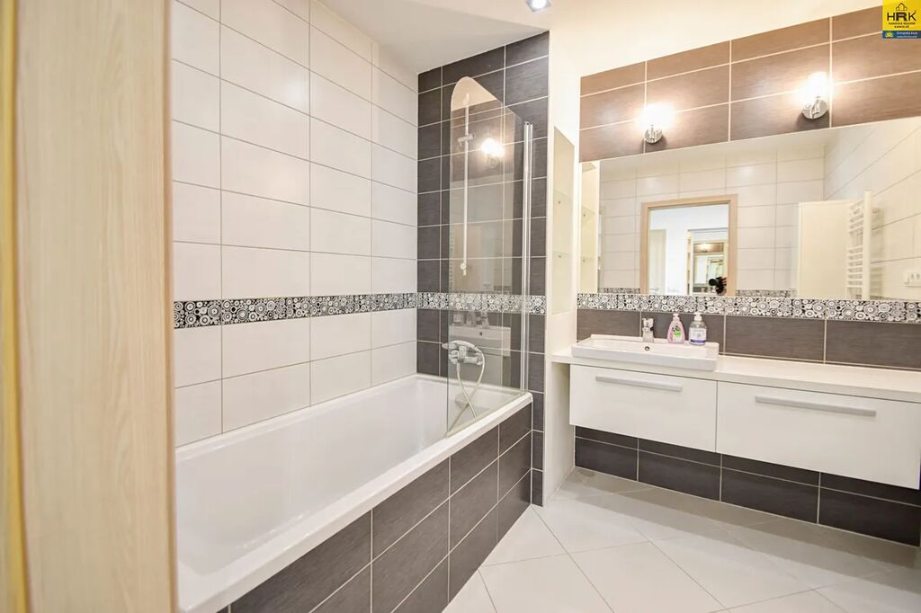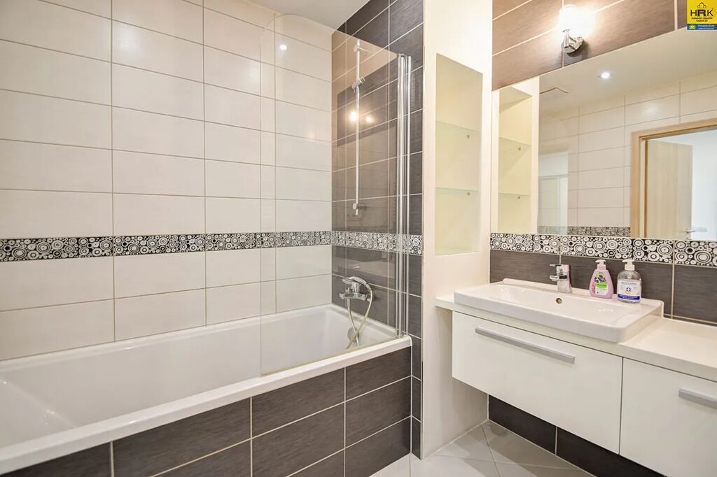 Nabízíme k pronájmu velmi pěkný zánovní cihlový byt o dispozici 2+kk s terasou v Olomouci na ulici Jeremiášova. Jedná se o nezařízený byt v osobním vlastnictví nacházející se ve 2. patře zánovního (postaveno v roce 2014) šestipodlažního cihlového bytového domu s výtahem. Podlahová plocha bytu činí cca 62 m2 + terasa cca 11 m2. Byt je orientován jihozápadním směrem, pokoje jsou neprůchozí. Z obývacího pokoje se vstupuje na prostornou krytou terasu. Kuchyň je zařízena moderní kuchyňskou linkou s vestavnými spotřebiči (indukční varná deska, odsavač par, horkovzdušná a mikrovlnná trouba, chladnička s mrazákem, myčka). V ložnici je praktická vestavěná skříň. Koupelna je vybavena vanou se skleněnou vanovou zástěnou, umývadlem, otopným žebříkem a prostorem s přípravou pro pračku a sušičku. WC je samostatné se závěsnou mísou. Z předsíně je přístupná i komora s šatnou. Celkově se jedná o velmi vkusně, moderně a přitom prakticky řešený nadstandardní byt s použitými kvalitními materiály a příslušenstvím (podlahy, osvětlení, spotřebiče atd.). Vytápění bytu je řešeno ústředním topením z dálkového zdroje, ohřev vody je centrální pro celý objekt. Moderní a útulný byt, výborný technický stav. Poloha nedaleko Fakultní nemocnice s veškerou občanskou vybaveností a výbornou obslužností MHD. Volný od 1.11.2025. Vybírána provize a vratná kauce. Bližší informace u makléře zakázky.