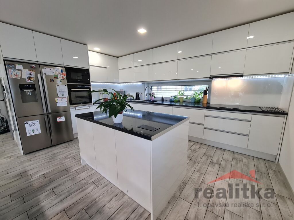 Nabízíme k prodeji novostavbu rodinného domu ve Štáblovicích, okr. Opava. Tento bungalov byl kolaudován v r. 2022, některé jeho části a systémy byly dokončeny teprve nedávno. K plnému dokončení chybí pouze zámková dlažba před domem (část stavebního materiálu je již nakoupena) a dodělání zahradního domku (je hotový dřevěný skelet). V domě je využita řada moderních technologií, např. ovládání venkovních žaluzií, nebo zónového podlahového topení mobilem. Na míru vyhotovená kuchyňská linka s ostrůvkem je vybavena myčkou nádobí, indukční varnou deskou, horkovzdušnou troubou, mikrovlnkou a americkou lednicí. Je zde kamerový zabezpečovací systém s čidly pohybu. Stavba vyhovuje nejvyšším požadavkům na energetickou náročnost. Obvodové zdi jsou z cihelného systému Porotherm 30 cm, zatepleno fasádním polystyrenem 20 cm, okna s trojskly, stropy zatepleny minerální izolací 33 cm, střešní krytina - tašky Tondach. O vytápění a ohřev vody se stará nové tepelné čerpadlo. Interiér tvoří 3 pokoje, velký obývací prostor s jídelnou a kuchyní, koupelna 2 x WC, komora, sklad a prostorná garáž s dálkově ovládanými vraty. Z terasy je krásný výhled na východní stranu do otevřené krajiny - tato část katastru Štáblovice je vedena jako zemědělská půda a není zde možná další výstavba. Obec je velmi klidná, je zde mateřská školka a první stupeň základní školy. Vzdálenost do centra Opavy je cca 10 km, což je necelých 14 min. jízdy automobilem. V okolí jsou lesy s cyklostezkami, rybník a mnoho dalších zajímavých míst.