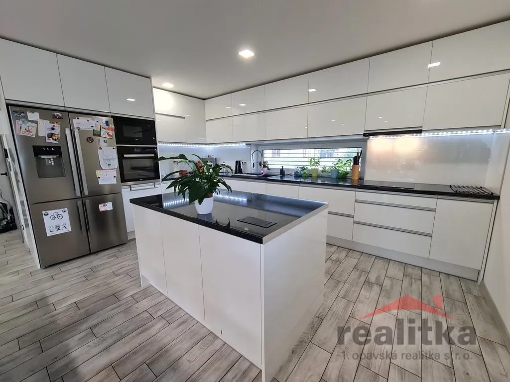 Nabízíme k prodeji novostavbu rodinného domu ve Štáblovicích, okr. Opava. Tento bungalov byl kolaudován v r. 2022, některé jeho části a systémy byly dokončeny teprve nedávno. K plnému dokončení chybí pouze zámková dlažba před domem (část stavebního materiálu je již nakoupena) a dodělání zahradního domku (je hotový dřevěný skelet). V domě je využita řada moderních technologií, např. ovládání venkovních žaluzií mobilem, centrální vysavač, nebo zónové podlahové topení. Na míru vyhotovená kuchyňská linka s ostrůvkem je vybavena myčkou nádobí, indukční varnou deskou, horkovzdušnou troubou, mikrovlnkou a americkou lednicí. Je zde kamerový zabezpečovací systém s čidly pohybu. Stavba vyhovuje nejvyšším požadavkům na energetickou náročnost. Obvodové zdi jsou z cihelného systému Porotherm 30 cm, zatepleno fasádním polystyrenem 20 cm, okna s trojskly, stropy zatepleny minerální izolací 33 cm, střešní krytina - tašky Tondach. O vytápění a ohřev vody se stará nové tepelné čerpadlo. Interiér tvoří 3 pokoje, velký obývací prostor s jídelnou a kuchyní, koupelna 2 x WC, komora, sklad a prostorná garáž s dálkově ovládanými vraty. Z terasy je krásný výhled na východní stranu do otevřené krajiny - tato část katastru Štáblovice je vedena jako zemědělská půda a není zde možná další výstavba. Obec je velmi klidná, je zde mateřská školka a první stupeň základní školy. Vzdálenost do centra Opavy je cca 10 km, což je necelých 14 min. jízdy automobilem. V okolí jsou lesy s cyklostezkami, rybník a mnoho dalších zajímavých míst.