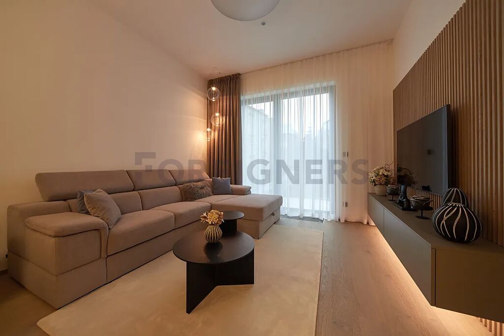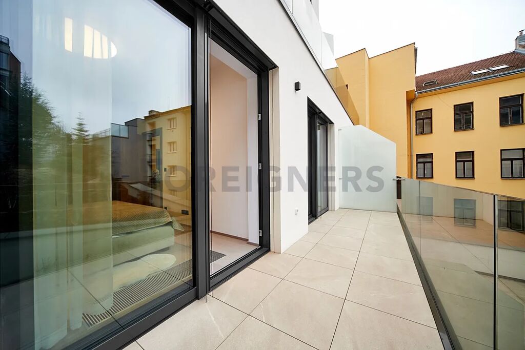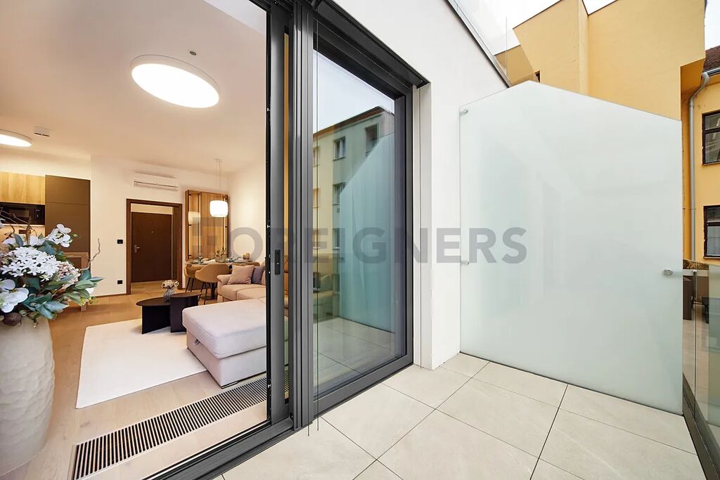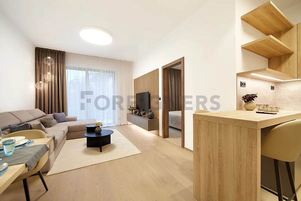 Byt má užitnou plochu (51,6 m²) a nachází se v novostavbě s výtahem. Srdcem bytu je prostorný obývací pokoj s kuchyňským koutem o velikosti (27,1 m²), který díky velkým oknům působí světlým a vzdušným dojmem. Odtud se vychází na terasu o ploše (11,7 m²) orientovanou do tichého vnitrobloku – ideální místo pro ranní kávu i večerní sklenku vína.