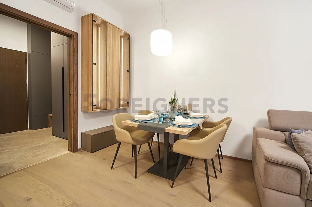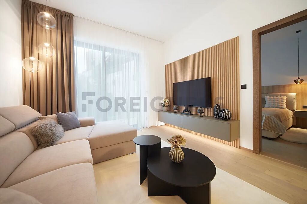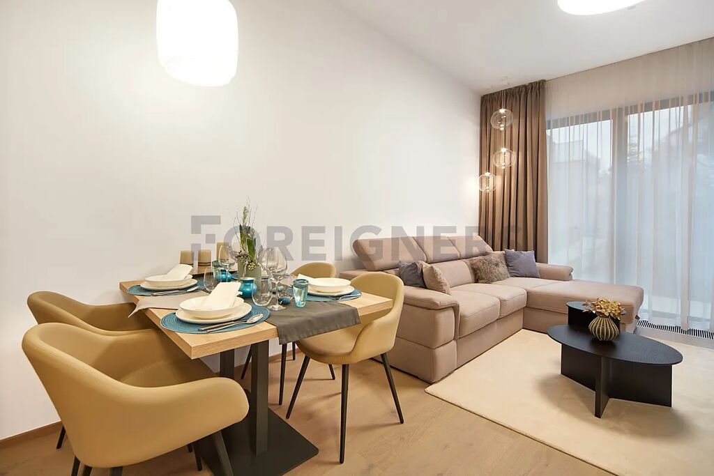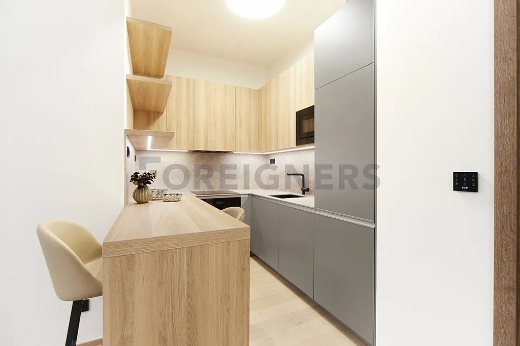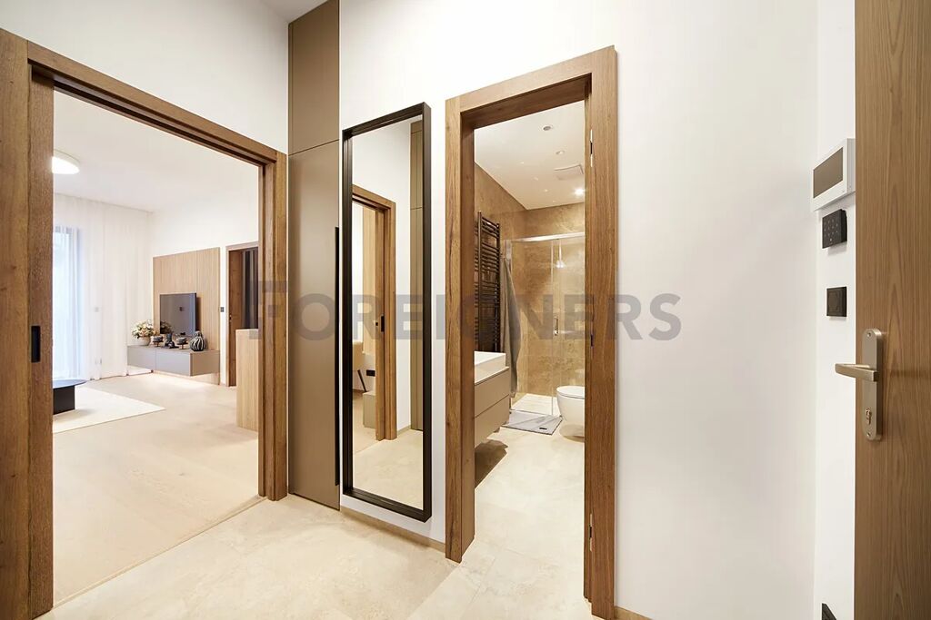 Byt má užitnou plochu (51,6 m²) a nachází se v novostavbě s výtahem. Srdcem bytu je prostorný obývací pokoj s kuchyňským koutem o velikosti (27,1 m²), který díky velkým oknům působí světlým a vzdušným dojmem. Odtud se vychází na terasu o ploše (11,7 m²) orientovanou do tichého vnitrobloku – ideální místo pro ranní kávu i večerní sklenku vína.