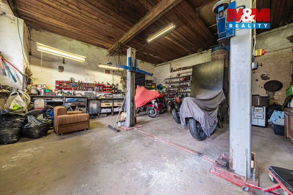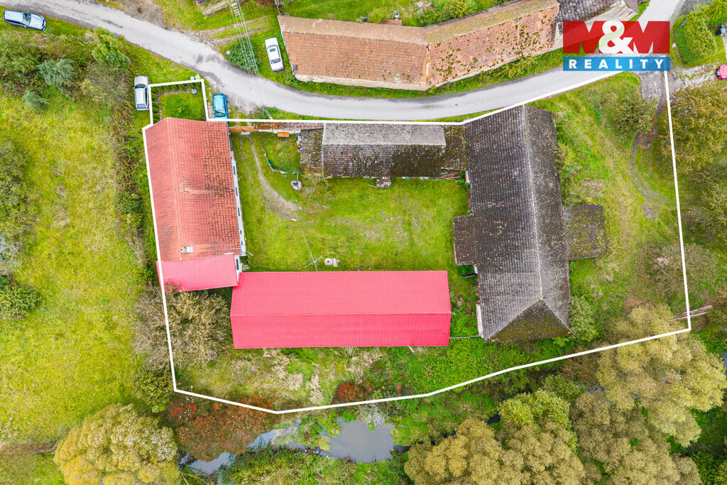 Součástí domu je uzavřený dvůr zajišťující soukromí, stodola, autodílna a další hospodářské budovy, které lze využít pro podnikání, skladování či chov zvířat.