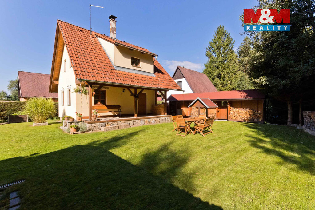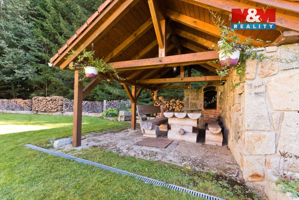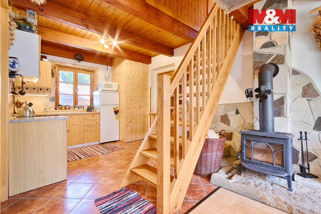 Nabízíme k prodeji krásnou chatu v malebné části obce Kunějov v České Kanadě. Chata má zděnou konstrukci z cihel 25 cm a izolovaný plášť 5 cm polystyrenu. Stavba byla dokončena v roce 2006 a nachází se na pozemku 582 m2 a dále k nemovitosti náleží pozemek 1 273 m2 v těsné Blízkosti. V 1. nadzemním podlaží najdeme kuchyň s obývacím pokojem, vstupní chodbu a koupelnu. V patře jsou 2 samostatné místnosti. Zdrojem vody je vlastní kopaná studna a odpad je sveden do jímky. O bezpečí se stará zabezpečovací systém s pohybovými čidly. Na pozemku je krásná pergola s krbem a další skladovací prostory. Lokalita nabízí klidné prostředí s nádhernými výhledy do okolní krajiny, ideální pro milovníky přírody a klidného života. Neváhejte a domluvte si prohlídku této jedinečné nemovitosti v Kunějově. Těšíme se na vás!
