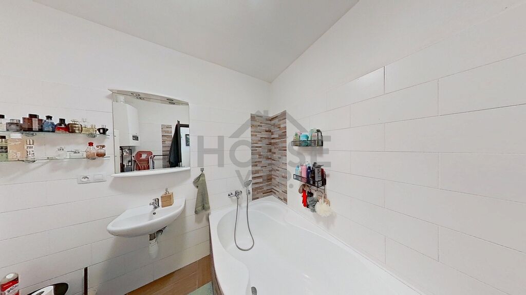 I přesto, že je byt podkrovní, v létě se nemusíte obávat vysokých teplot– je vybaven klimatizací, takže teplotu budete mít vždy přesně podle sebe. Součástí bytu je kuchyň na míru se spotřebiči Bosch a Siemens, vestavěná skříň a vše, co potřebujete pro pohodlné bydlení. O teplo i teplou vodu se stará plynový kotel přímo v bytě. Náklady na bydlení jsou velmi příjemné – pro dvě osoby kolem 4 000 Kč měsíčně.