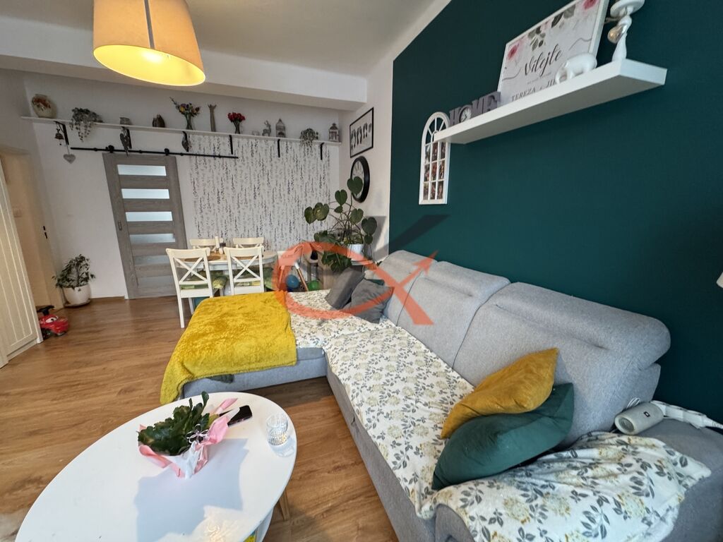Byt zaujme svým moderním a útulným stylem – rozvody vody jsou v plastu, elektřina v mědi, na podlahách plovoucí podlahy a všechna okna jsou plastová. Kuchyňská linka je vybavena vestavěnými spotřebiči – indukční varnou deskou, horkovzdušnou troubou a myčkou nádobí. Praktickým doplňkem jsou nově instalované posuvné dveře, které šetří místo a dodávají interiéru elegantní vzhled.