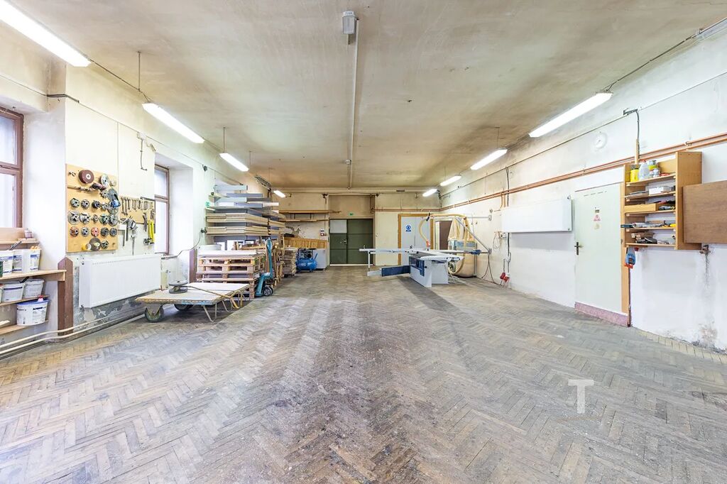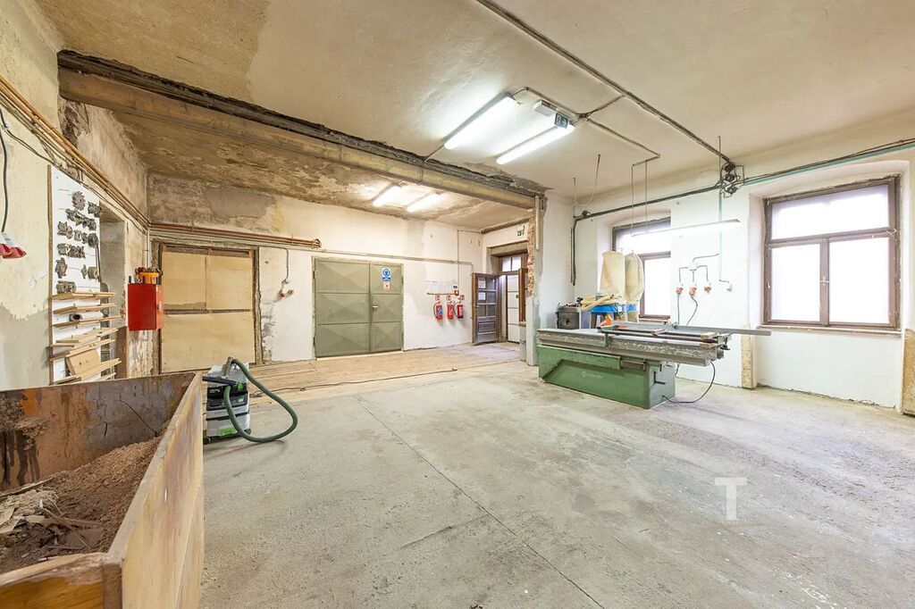 Dům stojí na vlastním pozemku o výměře 867 m² a je podsklepený. Celková užitná plocha je velkorysá – přízemí má přibližně 348 m², sklepní prostory zaujímají cca 325 m² a půdní prostor nabízí dalších cca 373 m² využitelných ploch, které lze upravit například na obytné podkroví, kanceláře nebo dílnu. V přízemí se nachází hlavní dílenský prostor, ruční dílna, sklady, komora, kuchyňka, sociální zázemí a vstupní hala se zázemím pro zaměstnance. Suterén slouží jako rozlehlý sklad nebo technické zázemí. Půdní prostor lze případně upravit pro další využití, což dává ideální prostor pro rozšíření bydlení nebo výroby.