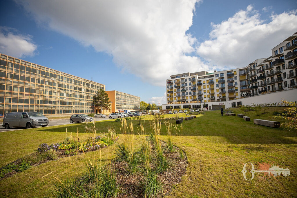 V docházkové vzdálenosti je zastávka Zásadská, kde zastavují autobusové linky 166 a 201. Pěšky snadno dostupná je i stanice metra C – Střížkov, která umožňuje rychlé spojení do centra i do dalších částí Prahy.