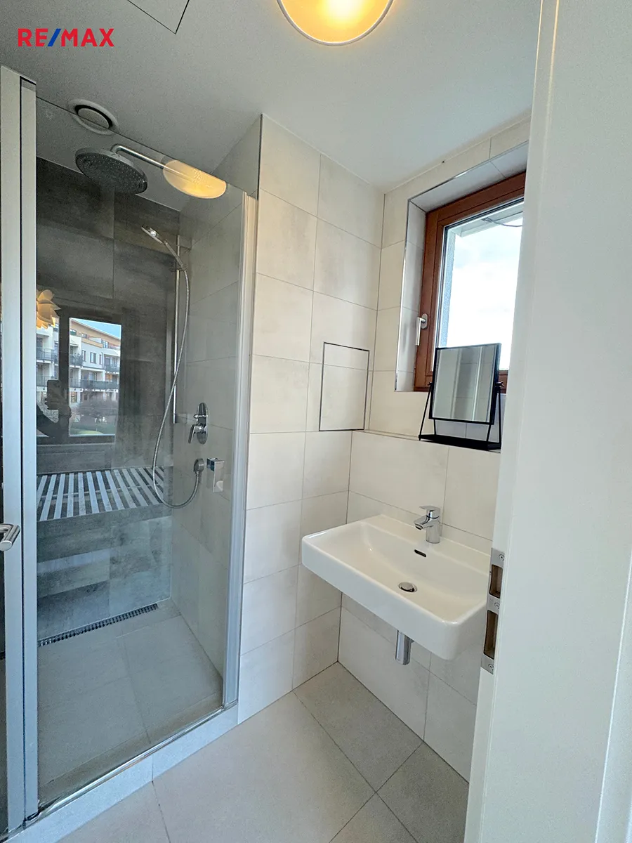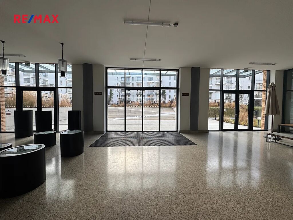 Vstupní chodba s praktickými úložnými skříněmi. Součástí bytu je také sklepní kóje, která poskytuje další úložný prostor, kočárek či kola možno uschovávat v kočárkárně v suterénu domu. V suterénu domu se nachází garážové stání.