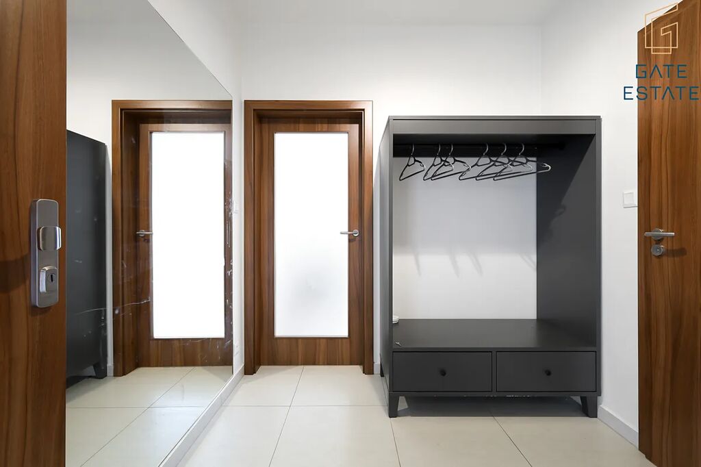 Byt je částečně vybavený: obývací část s rozkládací postelí, kuchyňská linka s vestavěnou lednicí, indukční deskou a digestoří, vstupní chodba se skříní a koupelna se sprchovým koutem a pračkou. Z bytu je vstup na předzahrádku s posezením (stůl a 6 židlí), ideální pro relax nebo letní večeře na čerstvém vzduchu. Samozřejmostí jsou elektricky ovládané venkovní žaluzie, které zvyšují komfort i bezpečnost. K bytu náleží také prostorný sklep o velikosti 8 m².