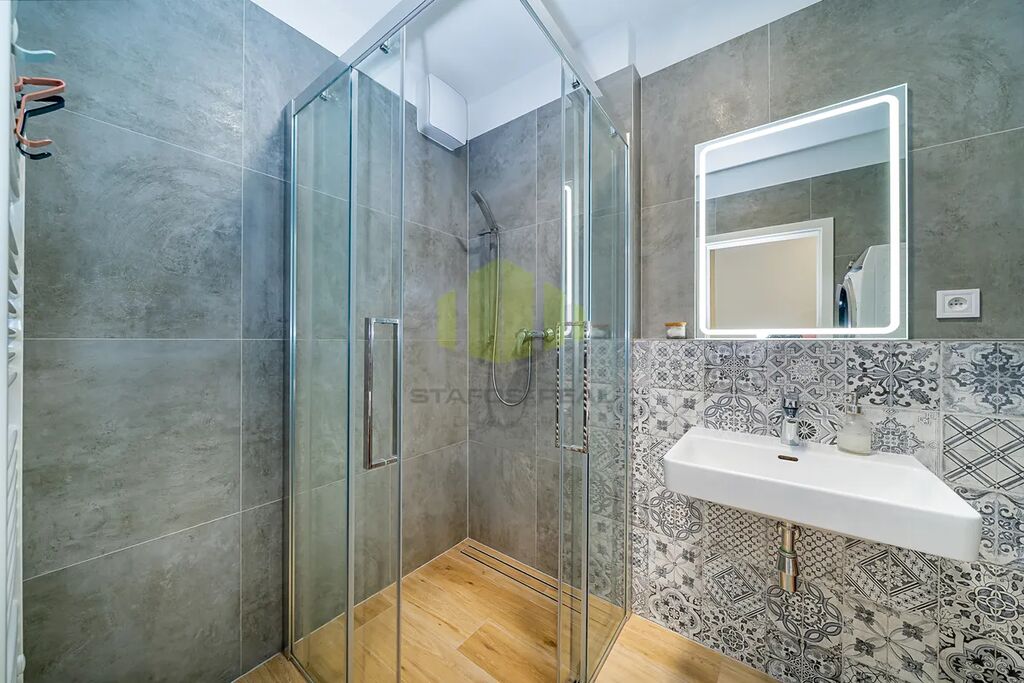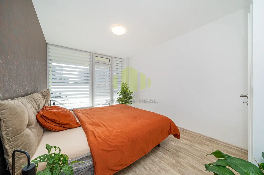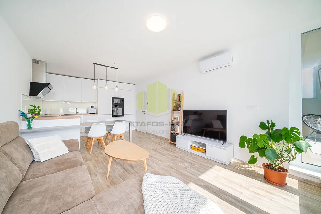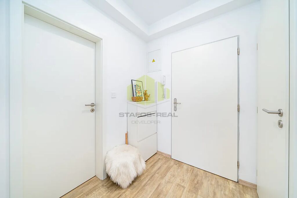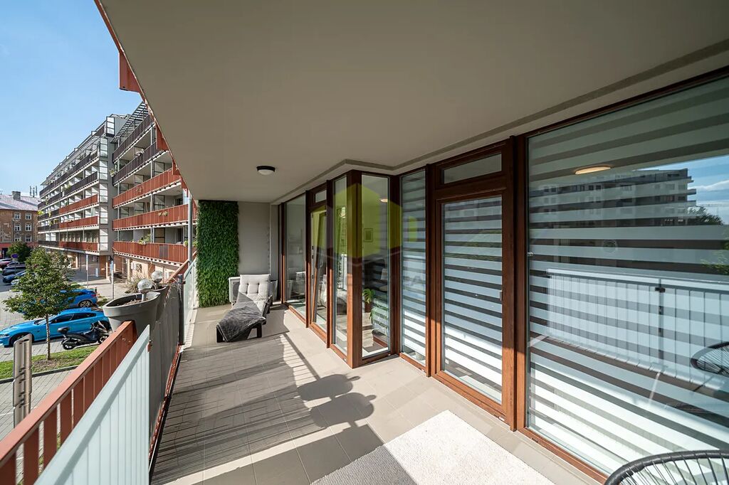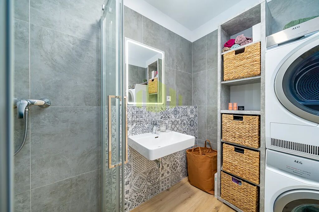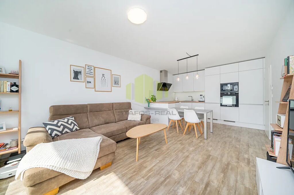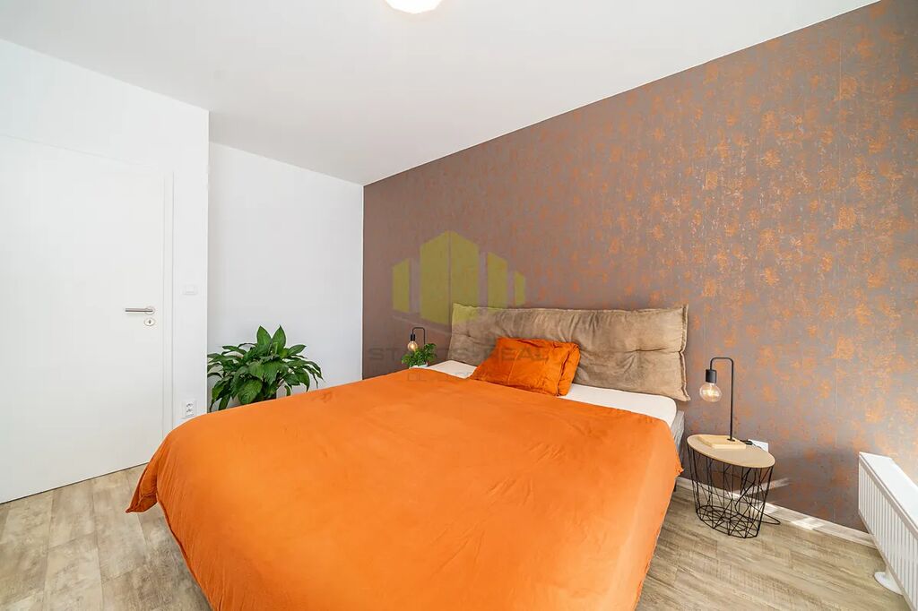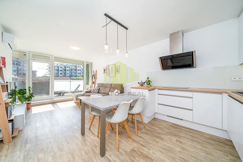 Byt se prodává kompletně vybavený moderním nábytkem, doplňky i kuchyňskou linkou se spotřebiči. Stačí se jen nastěhovat.