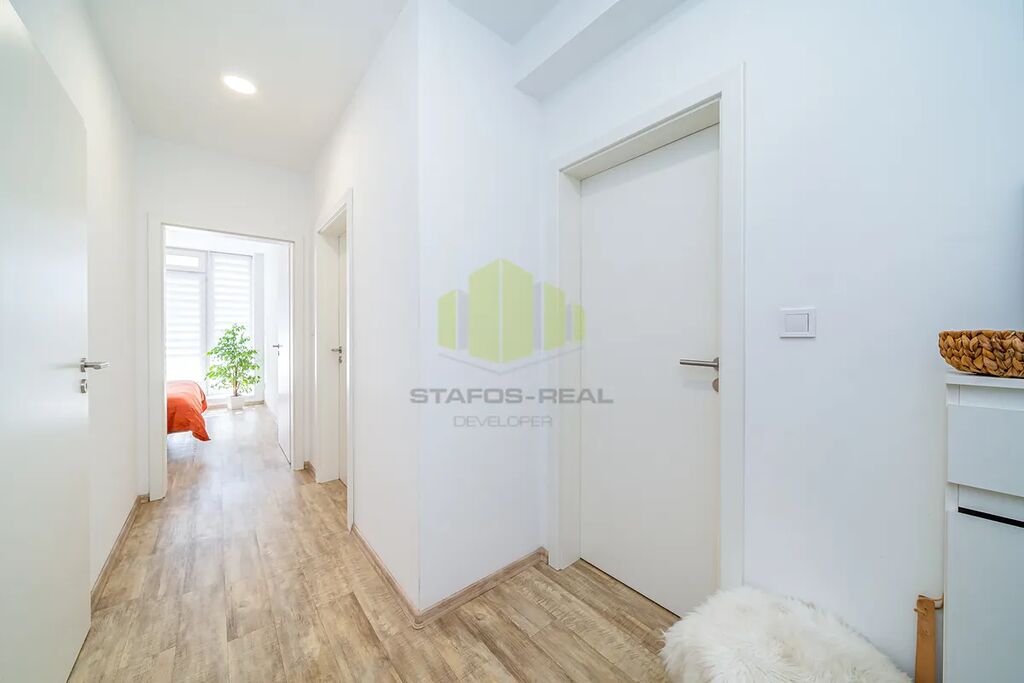 Byt je situován ve 2. nadzemním podlaží moderní cihlové novostavby a orientován na jih do klidného vnitrobloku. Dispozici tvoří obývací pokoj s kuchyňským koutem, ložnice, předsíň, koupelna, samostatné WC, šatna a velká lodžie přístupná z obou pokojů.