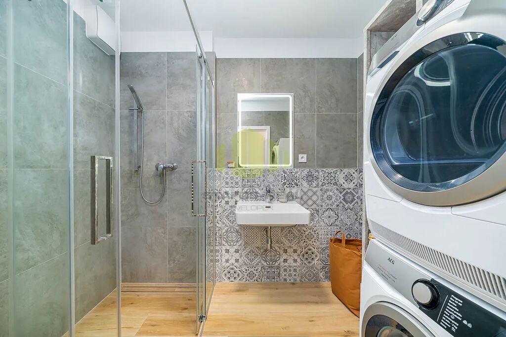 Už na první pohled zaujme kvalitní provedení a vybavení. Vinylové podlahy s dřevodekorem, teplovodní podlahové vytápění, dřevěné obložkové zárubně CPL, značková sanita, francouzská okna s trojskly a klimatizace – vše v nadstandardním provedení. Dům je zateplen, má energetickou třídu B a mezibytové příčky AKU SYM tloušťky 30 cm zajišťující vynikající zvukovou izolaci. Díky tomu jsou náklady na bydlení mimořádně nízké – pouze 1.815 Kč měsíčně včetně fondu oprav (+ elektřina dle spotřeby).