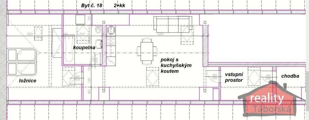 Byt č. 18 - 2+kk o výměře 60,28 m2 za cenu 6,950.000,- Kč. K bytu náleží jedno zamykatelné parkovací stání před domem..