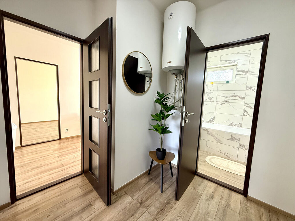 Jako přímí vlastníci nabízíme k prodeji kompletně zrekonstruovaný byt o dispozici 3+1, velikosti 66 m² + balkon, ulice Osvoboditelů 2651, Žatec. Rekonstrukce byla dokončena v březnu 2025. Byt v osobním vlastnictví je umístěn ve třetím, posledním patře nízkopodlažního cihlového domu a nabízí krásný výhled na řeku Ohři a historické centrum města.