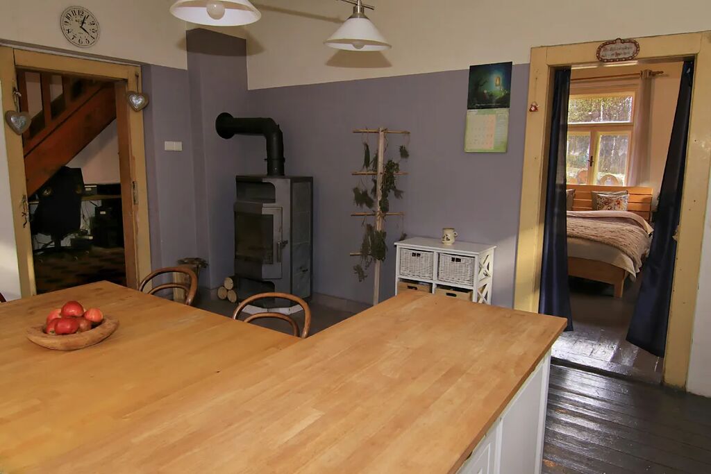Cihlový rodinný dům o dispozici 3+kk a podlahové ploše cca 80m2 se skládá z přízemí a 1.patra. Přízemí rodinného, cihlového domu tvoří předsíň, koupelna se sprchovým koutem + toaletou, obývací pokoj s krbovými kamny a odděleným kuchyňským koutem, a ložnicí. V prvním patře, propojeném dřevěným schodištěm, nalezneme oddělenou ložnici.