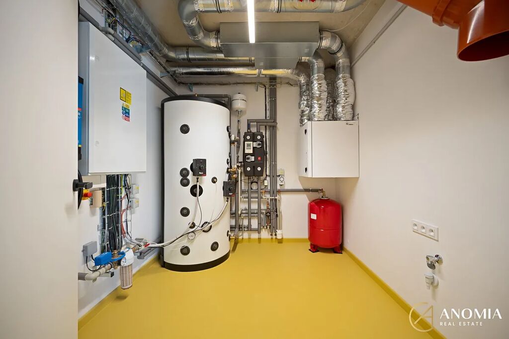 Vápenopískové zdivo, monolitické stropy, zateplení EPS 24 cm, ve střeše cca 45 cm foukané izolace, AL okna s trojskly, venkovní žaluzie s čidly (léto/zima), masivní dřevěné podlahy, polyuretanové stěrky, italská dlažba. PENB A (–40).